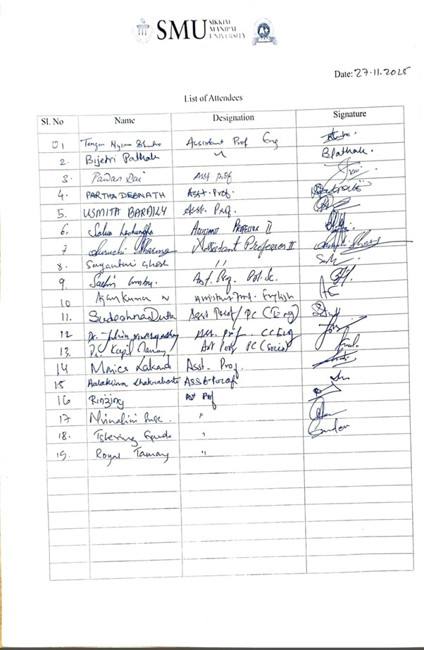 | 1 | Dr. Kapil Tamang | Assistant Professor, CDOE, SMU |