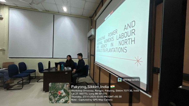 A key focus of the lecture was on the everyday resistance and agency demonstrated by women tea workers. Drawing on the theoretical framework of Chandra Talpade Mohanty, Dr. Tamang challenged the homogenised portrayal of third-world women as passive victims and showcased their lived realities through his fieldwork in tea plantations.